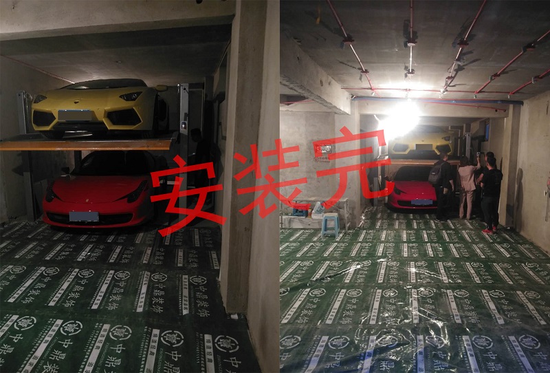 设备传动系统采用液压传动的方式,液压泵输出高压油推动液压缸,驱动载车板上升或下降,达到存取车辆的目的。地面停车位,待载车板上升到位后,即可驶入或驶出车辆。