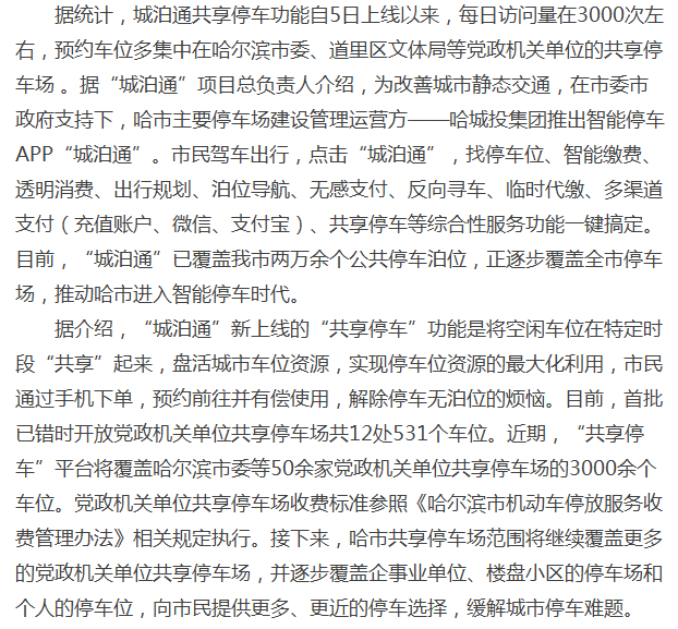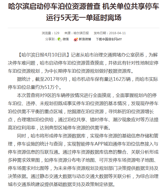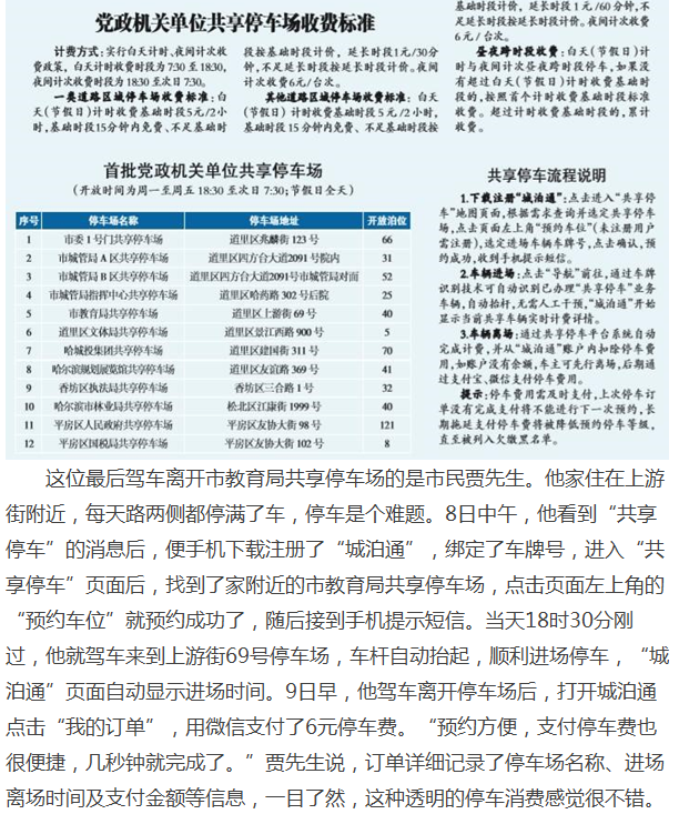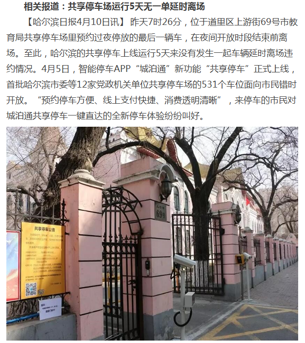哈尔滨启动停车泊位资源普查,机关单位共享停车运行五天无一单延时离场!