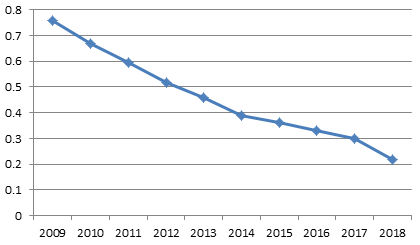 图3 2009-2018年全国万台特种设备死亡率情况