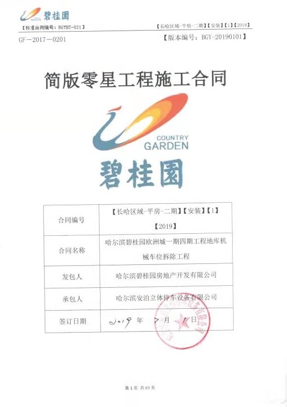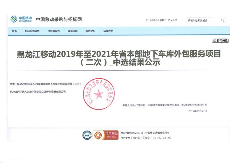 哈尔滨安泊立体停车设备分别在2019年5月、2019年7月拿下碧桂园及中国移动两个项目