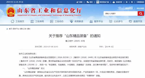 该评选是为落实习总书记系列重要指示精神,遴选一批技术领先凸显工匠精神和创新成果的“制造精密、性能精良、外观精致、质量精益”,******提升山东省装备品牌形象的名优产品,登榜设备代表着今后一个时期山东装备制造业的发展方向,对深入实施新旧动能转换重大工程具有重要影响和深远意义。