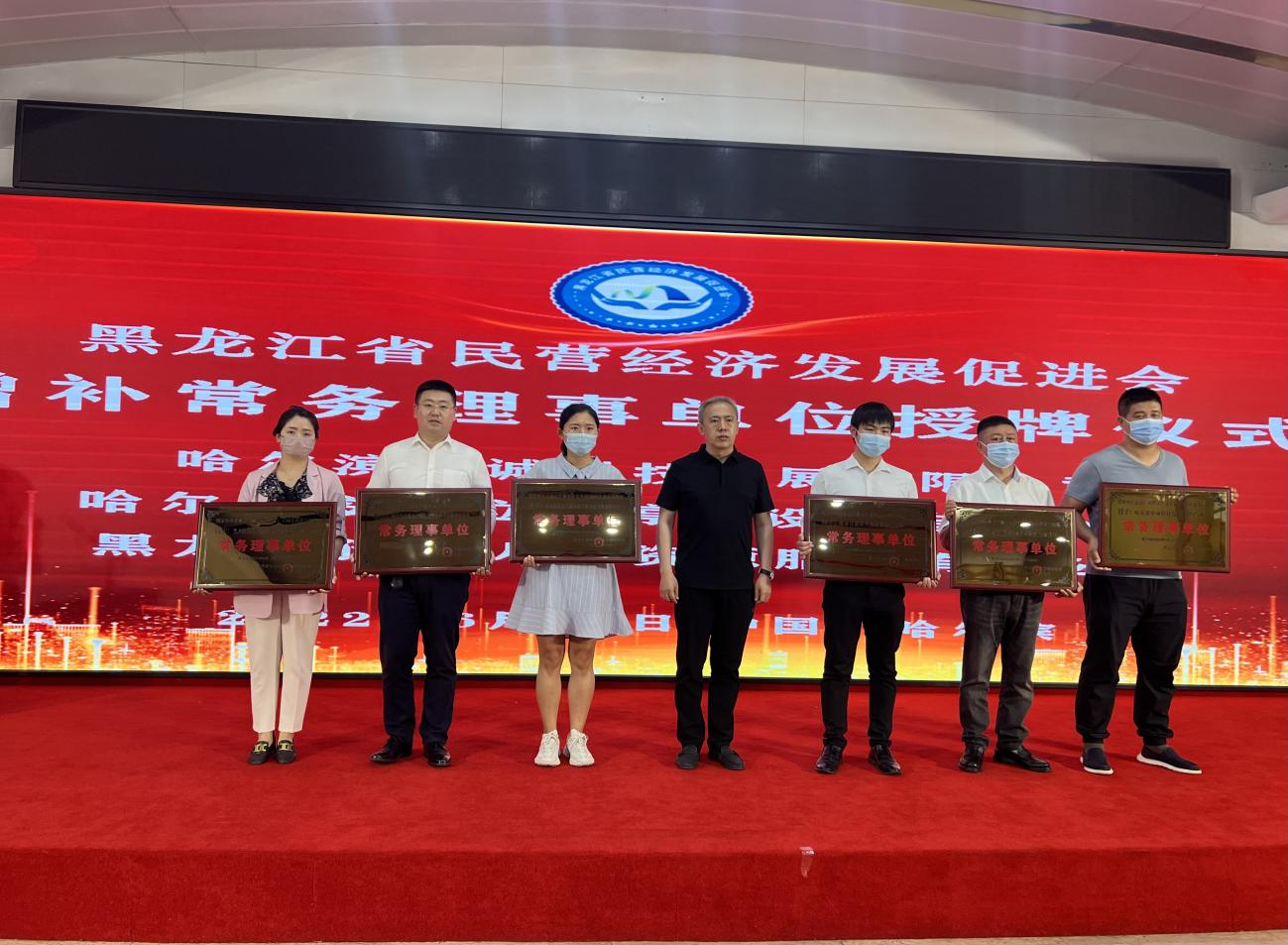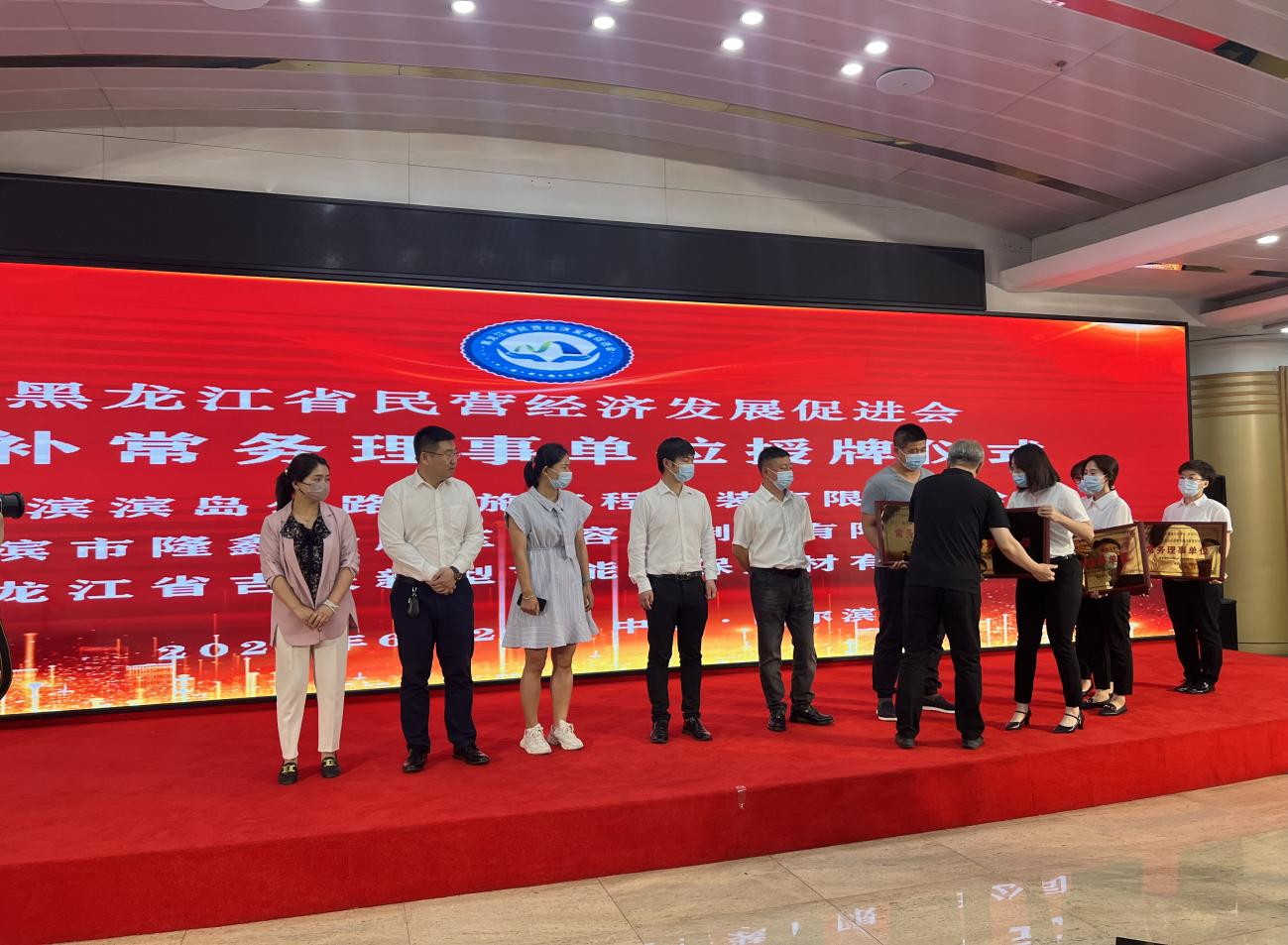 2022年6月27日我公司总经理郭伟明先生出席黑龙江省民营经济发展促进会举办的常务理事单位授牌仪式。画面中,各个******公司代表上台领奖;接受此奖项的我们倍感荣幸,也证明我公司在本行业中上一个新的台阶。今后,定会加倍奋进,激发员工活力,开发员工动力,提高员工整体素质,推动企业******发展。