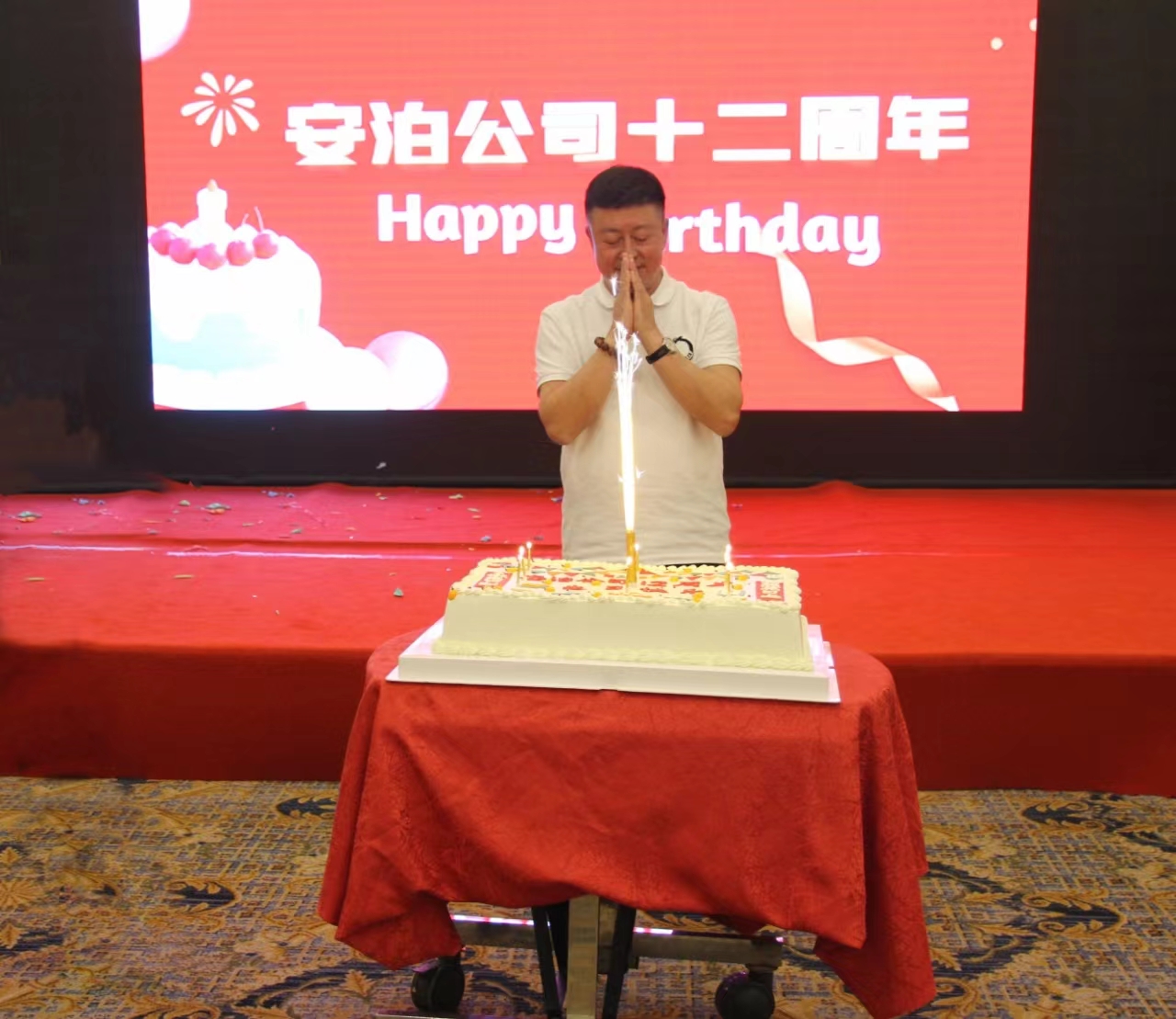 日月轮回,斗转星移,十二年来,安泊公司从无到有,由弱变强,在郭总的带领下安泊人齐心协力,勇于探索,用青春浇铸了时代昂扬的风骨,用真情铸就了辉煌的岁月。祝福安泊公司十二周年生日快乐!